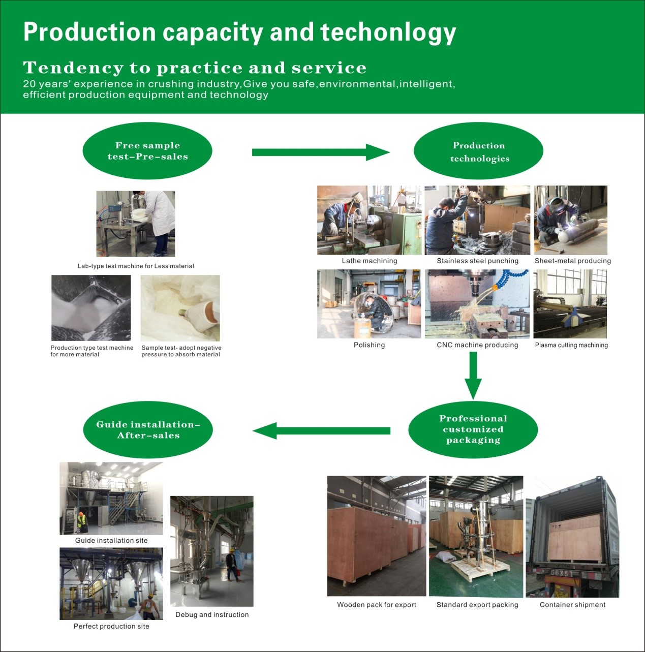 We have more than 10 technical talents who have been engaged in the system design for more than 20 years in the powder industry and have rich experience in pulverizing,mixing,drying,pelletizing,packaging,and powder conveying. in Agrochemical WP/WDG production lines,We can design the flowchart according to clients' requirements to meet customer's crushing requirements for various materials.